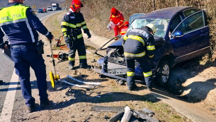Impact devastator pe șosea – doi oameni au rămas încarcerați