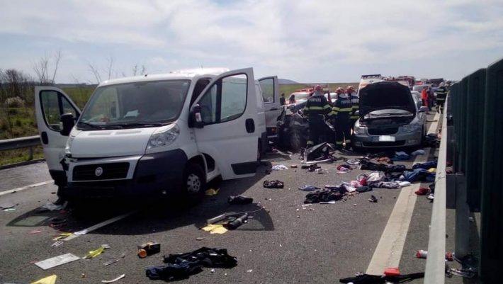 Accident cumplit în Timiș! Trei morți, între care un băiețel de doi ani, patru răniți, șase mașini distruse Autostrada Vestului blocată