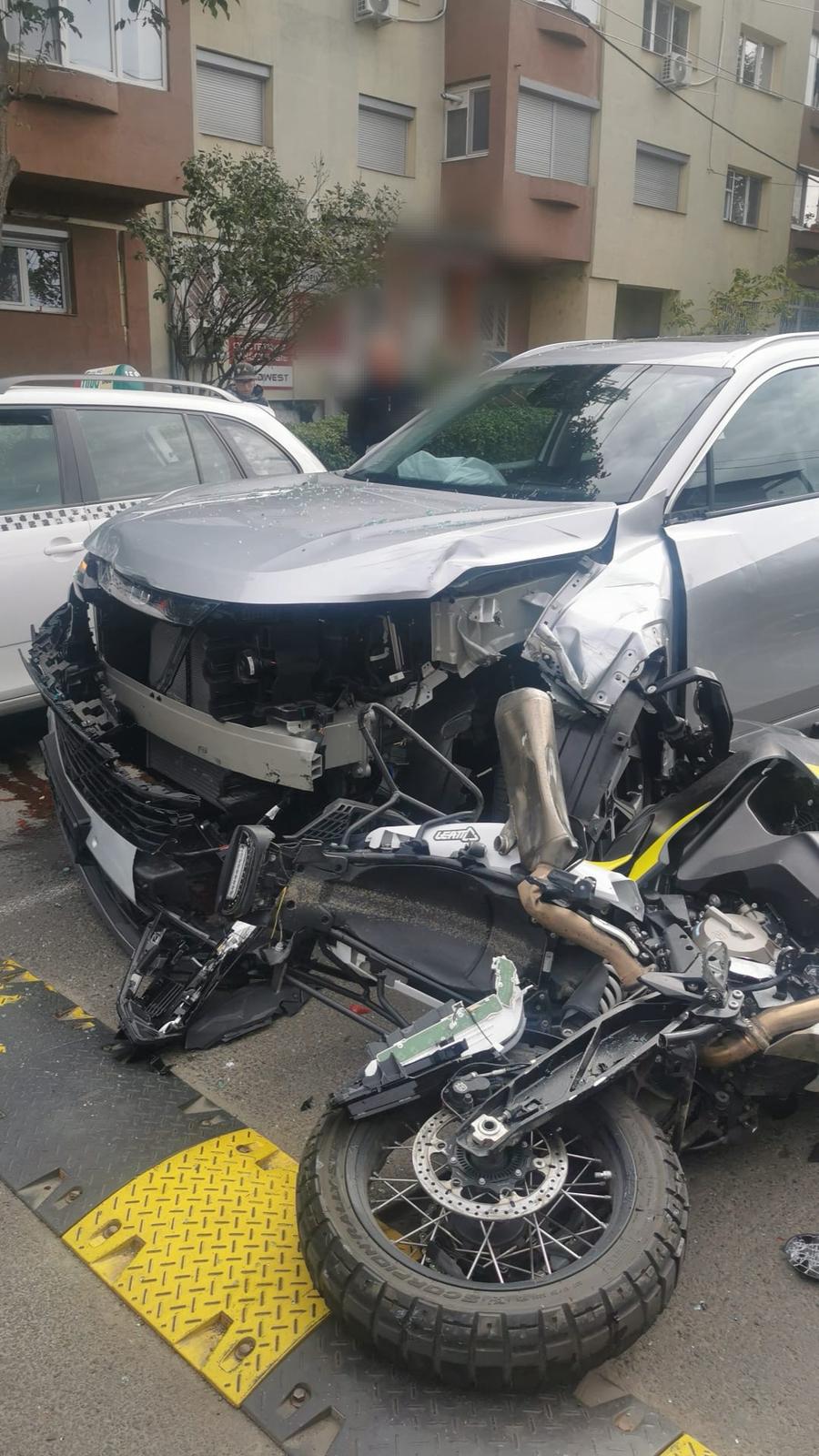 Ulterior, motocicleta a fost proiectată în autoturismul aflat în fața sa, condus de un bărbat de 46 de ani.