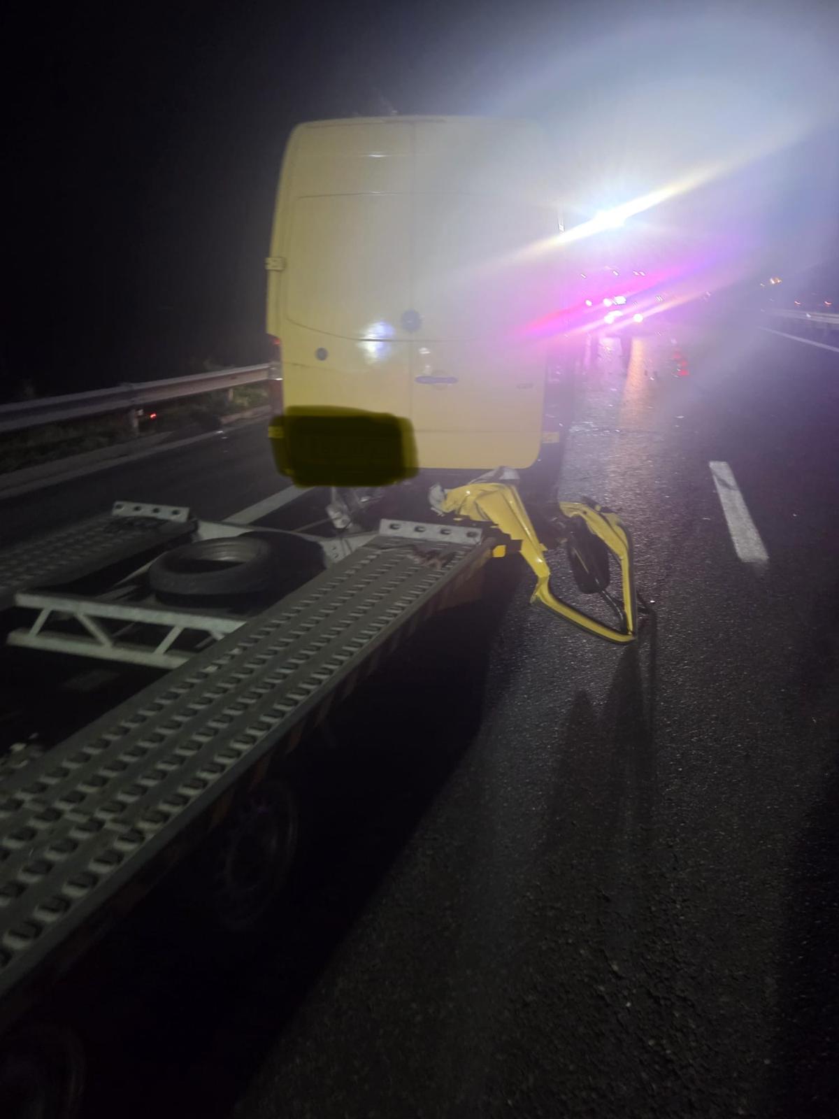 În momentul impactului, cele 3 persoane din autoutilitară se aflau în afara acesteia, în urma unei defecțiuni tehnice a autovehiculului, astfel că nu au fost afectate în urma coliziunii.