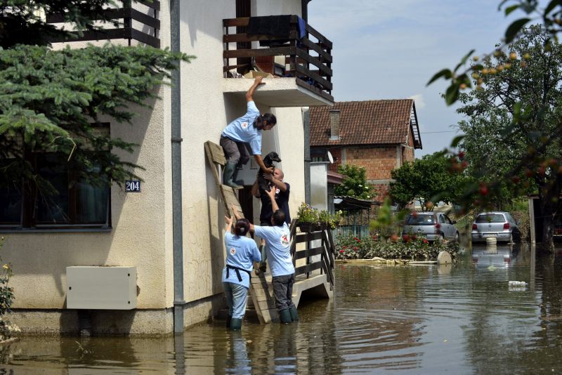 Four Paws members save dogs after floods in Obrenovac / Serbia, on May 24, 2014. The animal welfare organisation Four Paws started a floods response action (DRU) in Serbia. MIHAI VASILE / FOUR PAWS