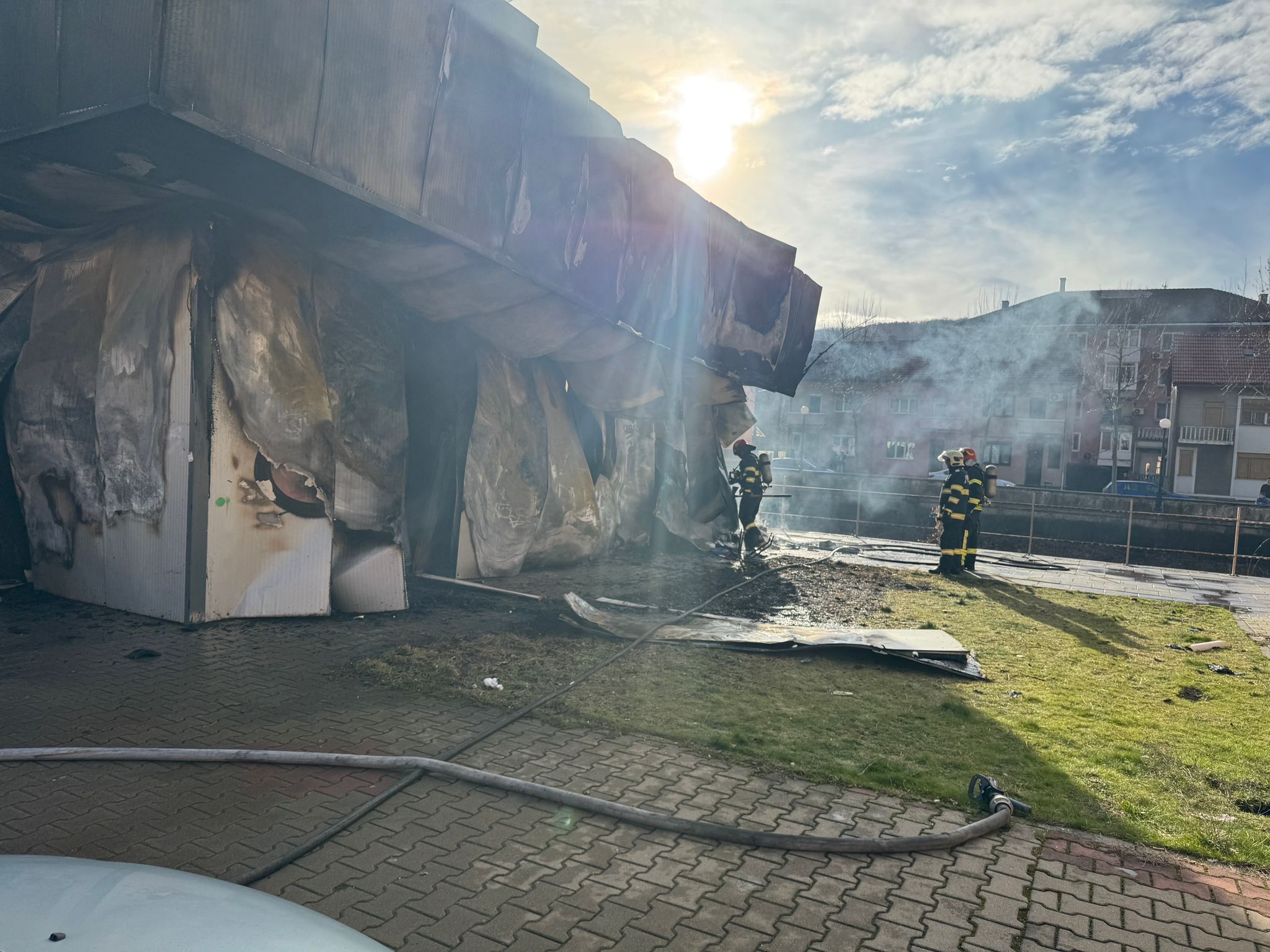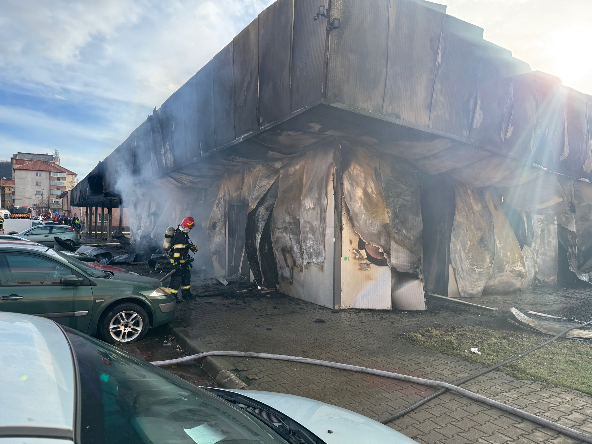 Incendiul a cuprins o construcție care adăpostea spații de depozitare și o parcare acoperită. Din cauza degajărilor mari de fum, autoritățile au transmis un mesaj RO-Alert pentru avertizarea și protejarea populației.
