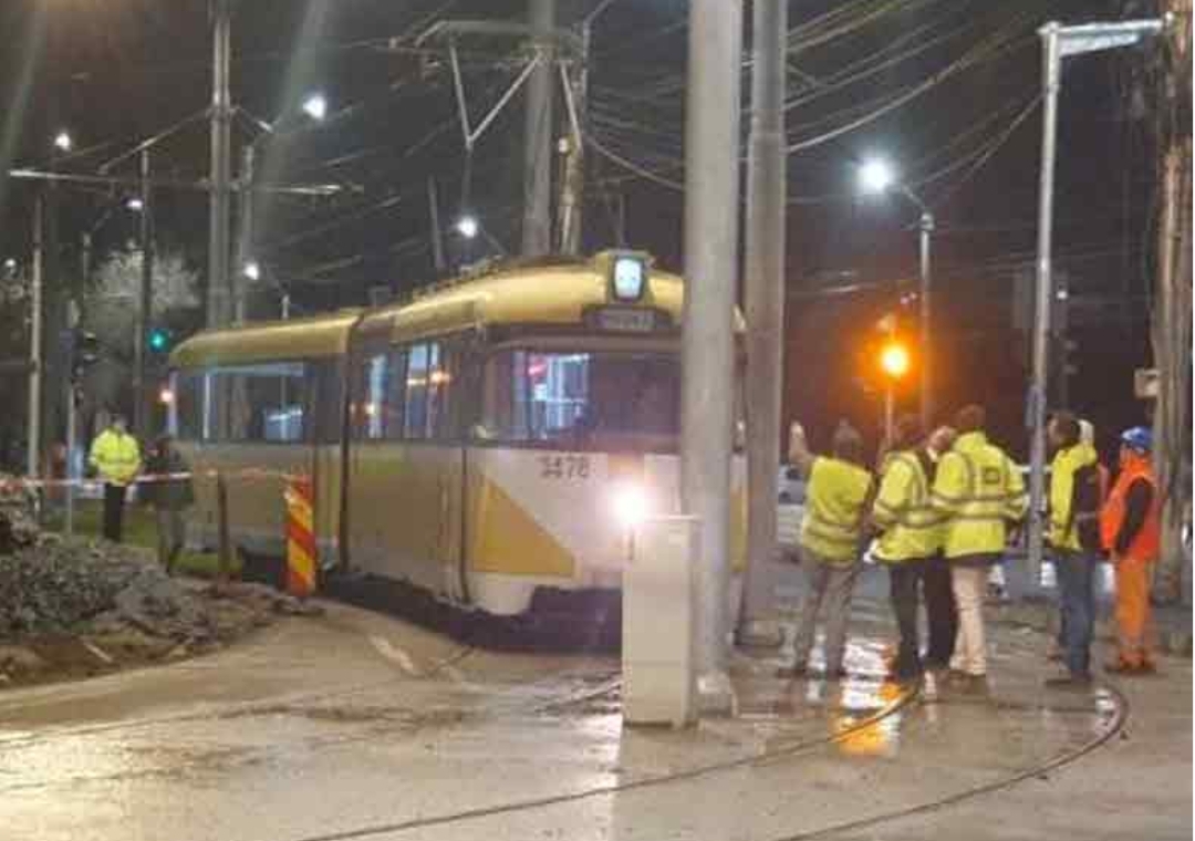 La primele teste cu tramvaiul pe noile linii, garnitura de probă s-a blocat din cauza frecării cu un stâlp așezat prea aproape între șine.