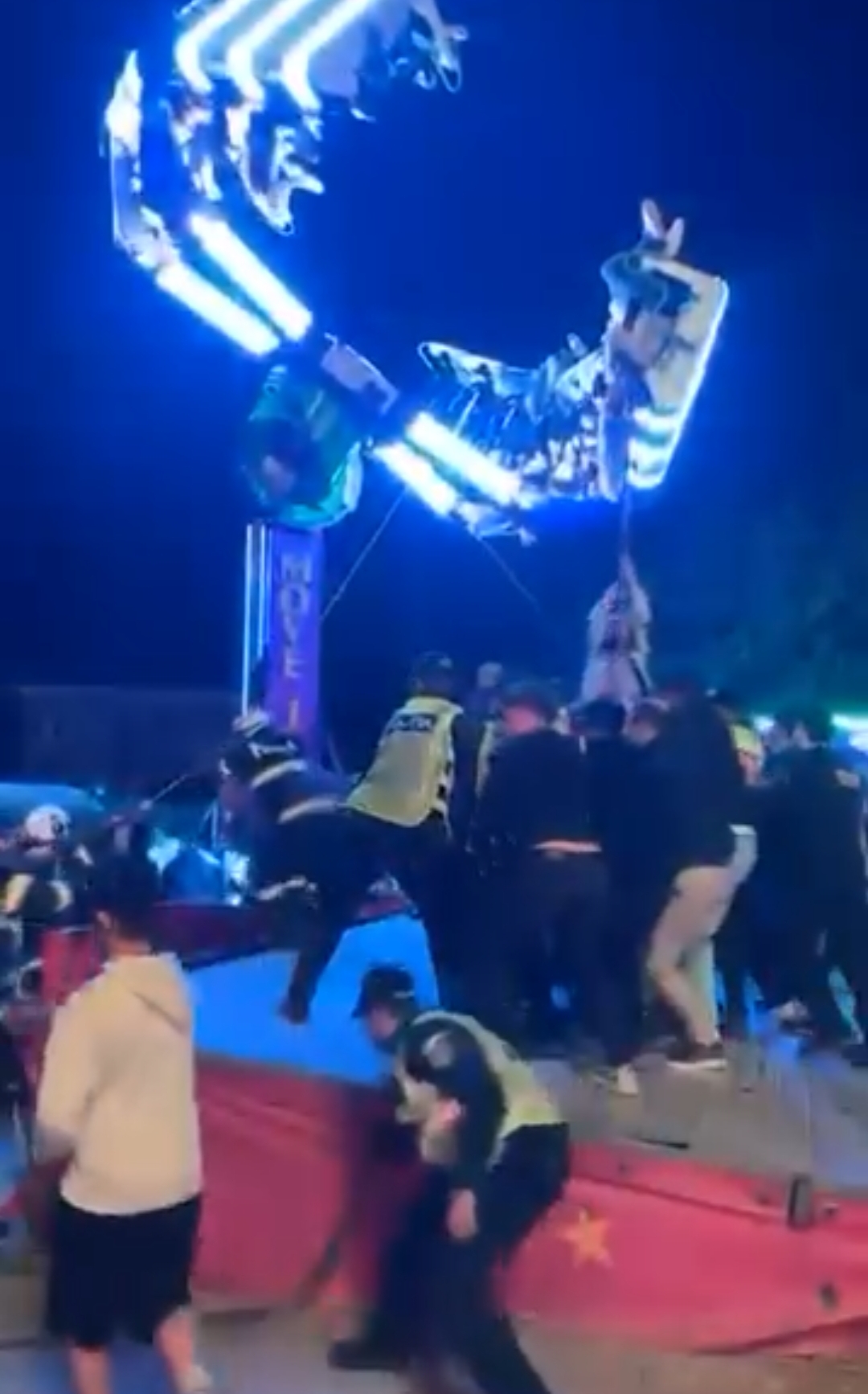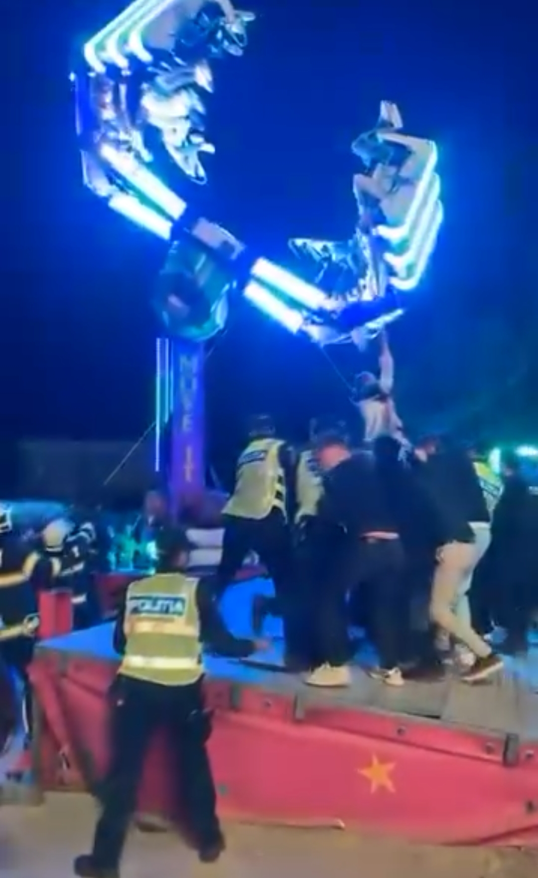 Mașinăria avea 18 locuri, dintre care 14 ocupate cu tineri cu vârste cuprinse între 14 și 20 de ani, iar unul dintre brațe a rămas blocat aproximativ 40 de minute, la o distanță de circa 4-5 metri de sol, în poziția răsucit cu capul spre sol, fără a mai răspunde comenzilor.