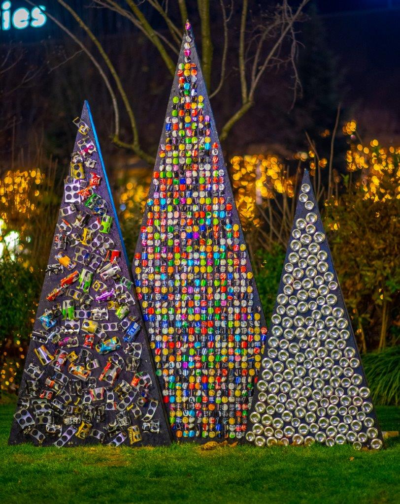 Capace metalice, CD-uri vechi, doze de aluminiu, carton, tablă și componente tehnice își găsesc o nouă viață, sub forma unor instalații urbane care te inspiră pentru a găsi noi idei pentru decorurile de sărbători.