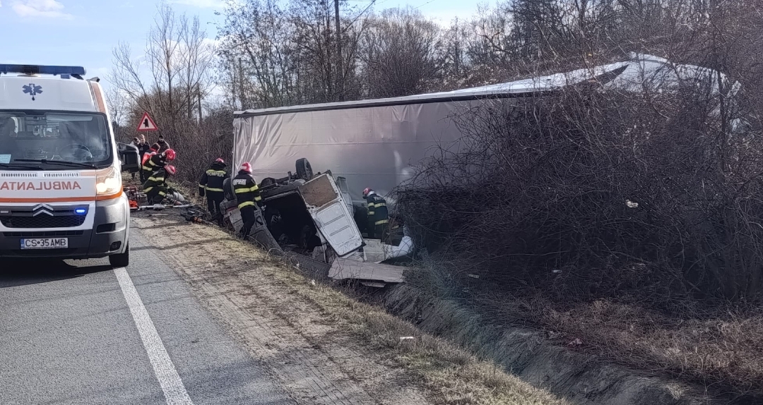 Șoferul autocamionului a primit îngrijiri medicale la fața locului și a fost transportat la spital de către echipajul Serviciului Județean de Ambulanță.