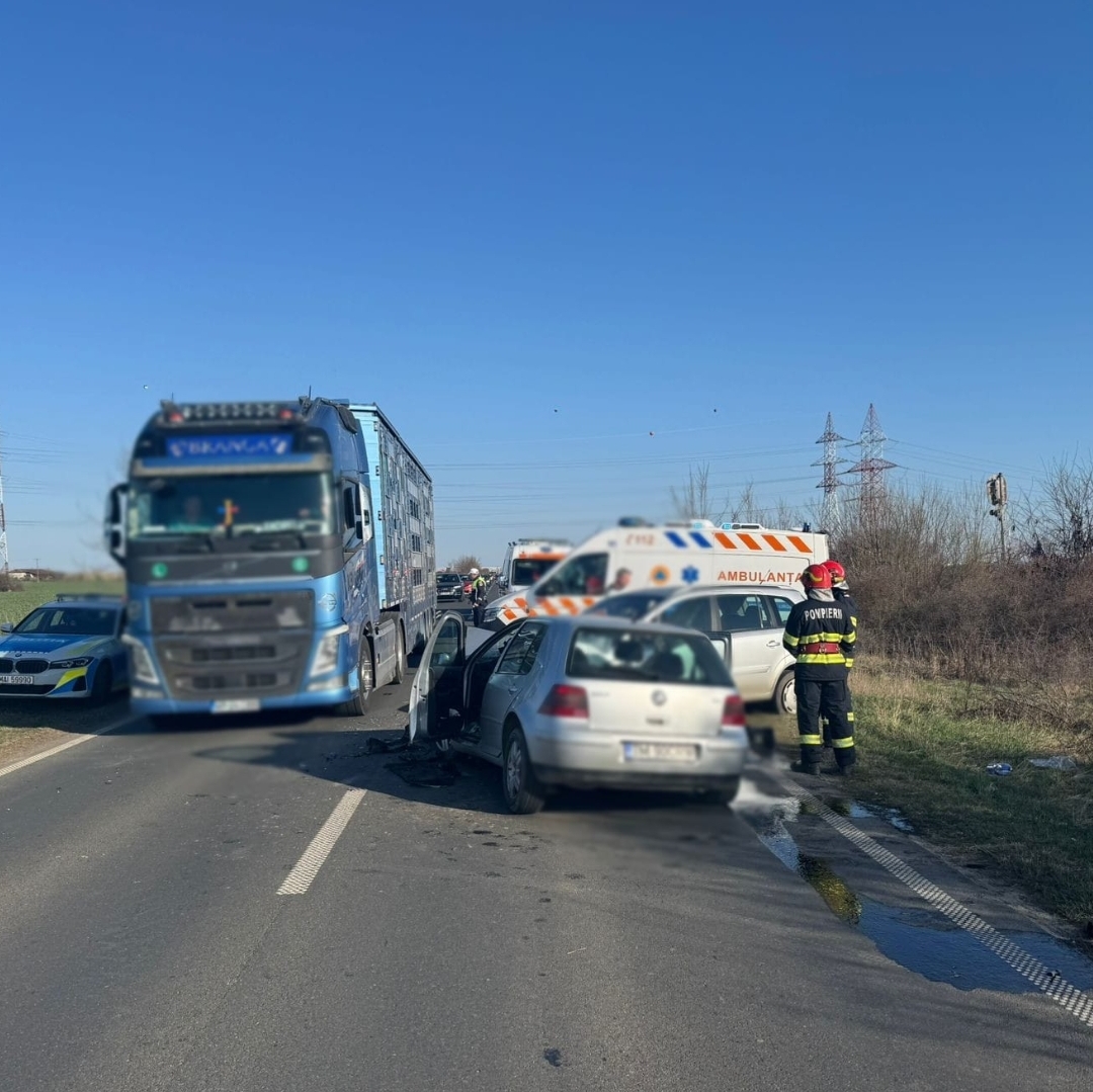 În urma impactului, ambii șoferi și o fată de 14 ani, pasageră în autoturismul condus de bărbatul de 53 de ani, au fost răniți și transportați la spital.