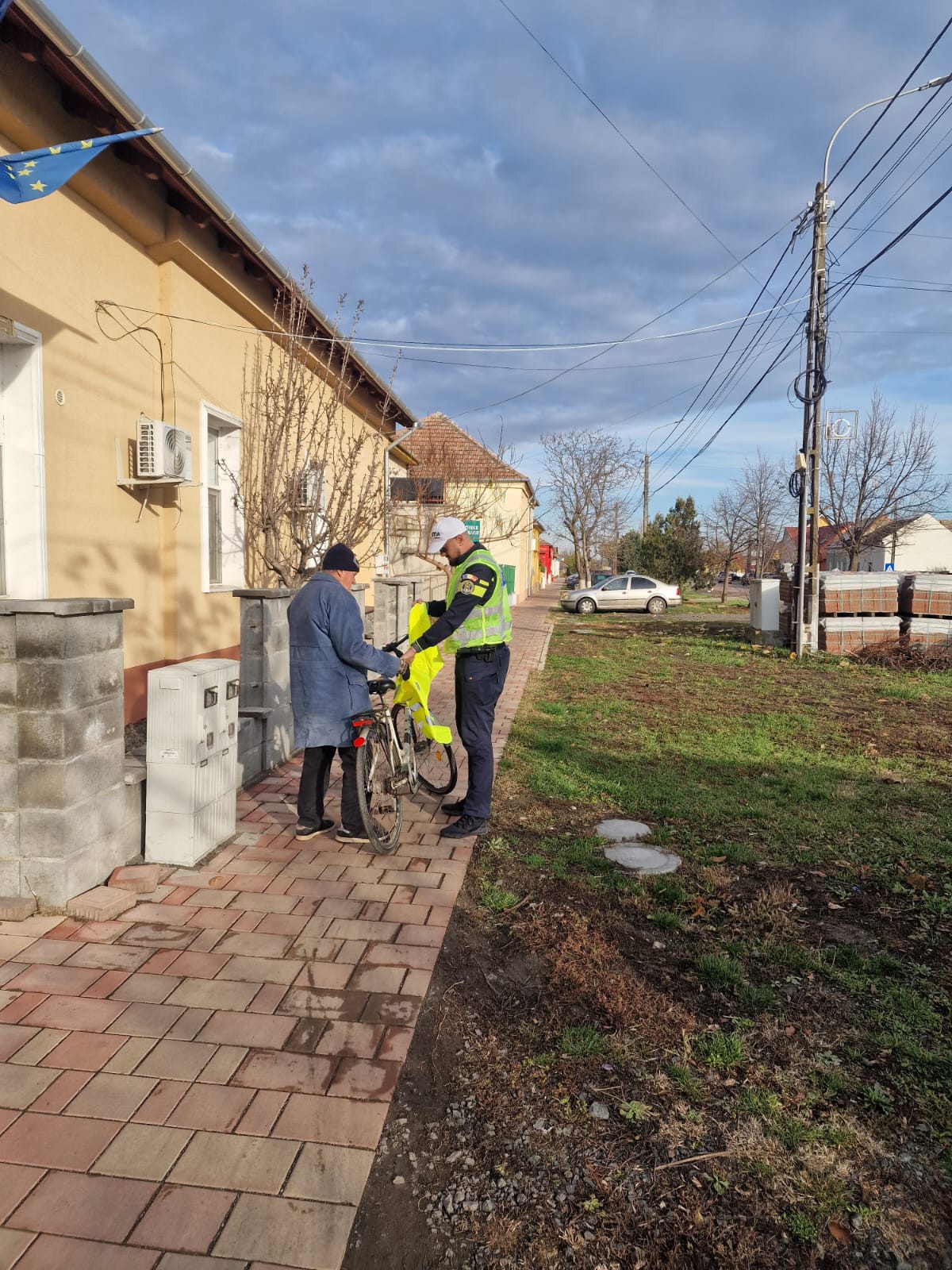 De asemenea, în cadrul activităților desfășurate, *_polițiștii au derulat o campanie de prevenire a riscului rutier asociat bicicliștilor, fiind distribuite veste reflectorizante pentru creșterea vizibilității acestora în trafic._*