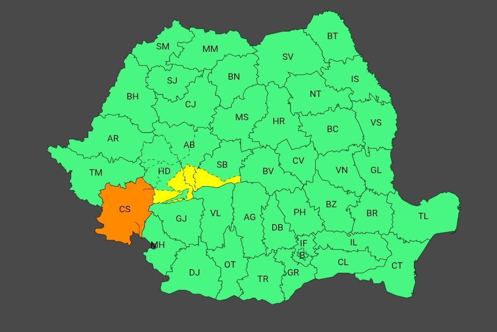 Meteorologii au emis o avertizare nowcasting tip COD ROȘU, pentru localitățile Oravița, Pojejena, Răcășdia, Grădinari, Sasca Montană, Ciclova Română, Vărădia, Socol, Berliște, Naidăș, Vrani, Ciuchici, valabilă astăzi, până la ora 21:00.