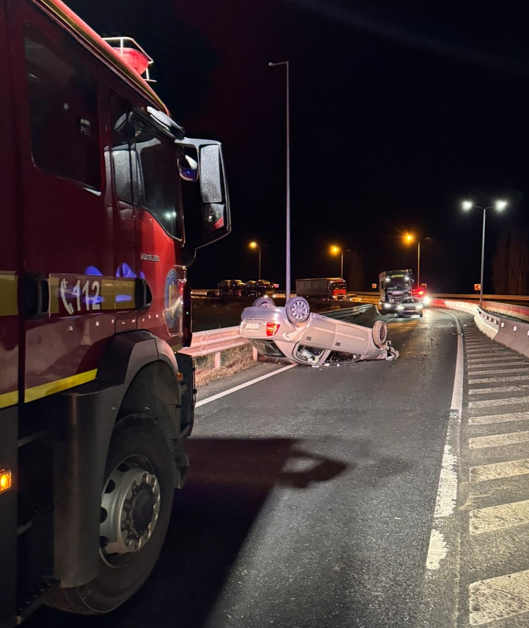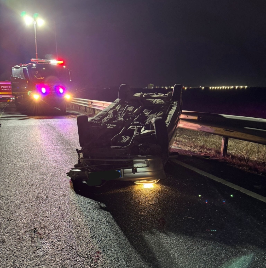 În data de 03.02.2026 în jurul orei 19:00, pompierii militari arădeni au fost solicitați să intervină la un accident rutier pe A11, autoturism răsturnat pe partea carosabilă.