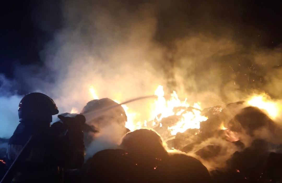 La sosirea echipajelor de intervenție, incendiul se manifesta prin ardere generalizată la aproximativ 400 de baloți de paie.