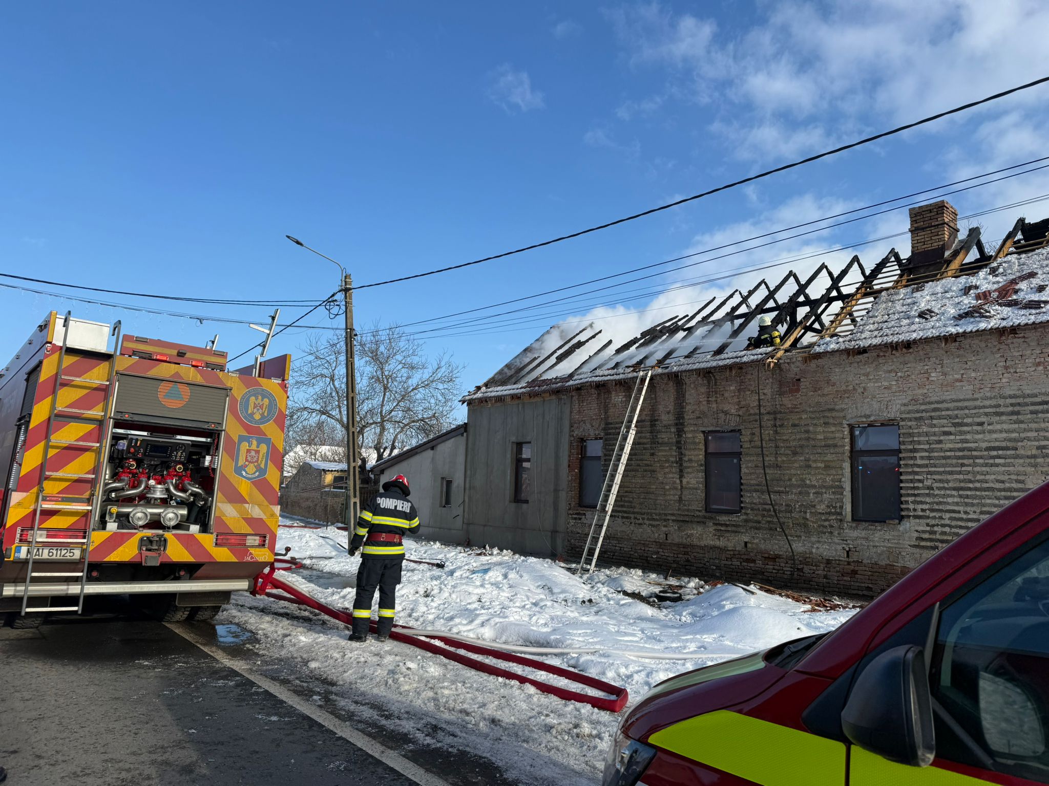 Astăzi, 11.01.2026, în jurul orei 09:50, am fost solicitați să intervenim pentru stingerea unui incendiu izbucnit la acoperișul unei case din localitatea Cenei.