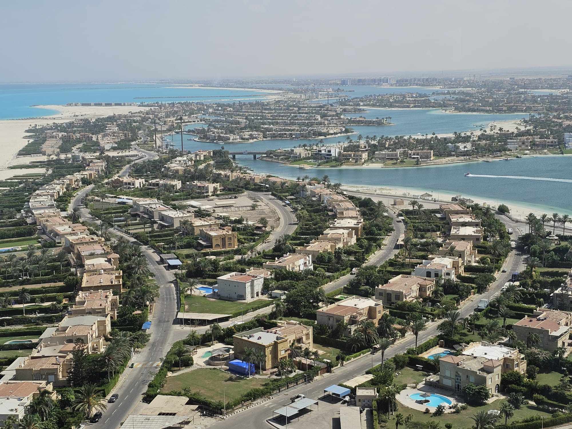 De-a lungul drumului spre coastă, priveliștea te copleșește: zeci de kilometri de vile, resorturi și hoteluri luxoase, dublate de lagune artificiale spectaculoase, amintind de insulele emblematice din Emirate, dar cu un aer mai deschis și mai variat din punct de vedere arhitectural.