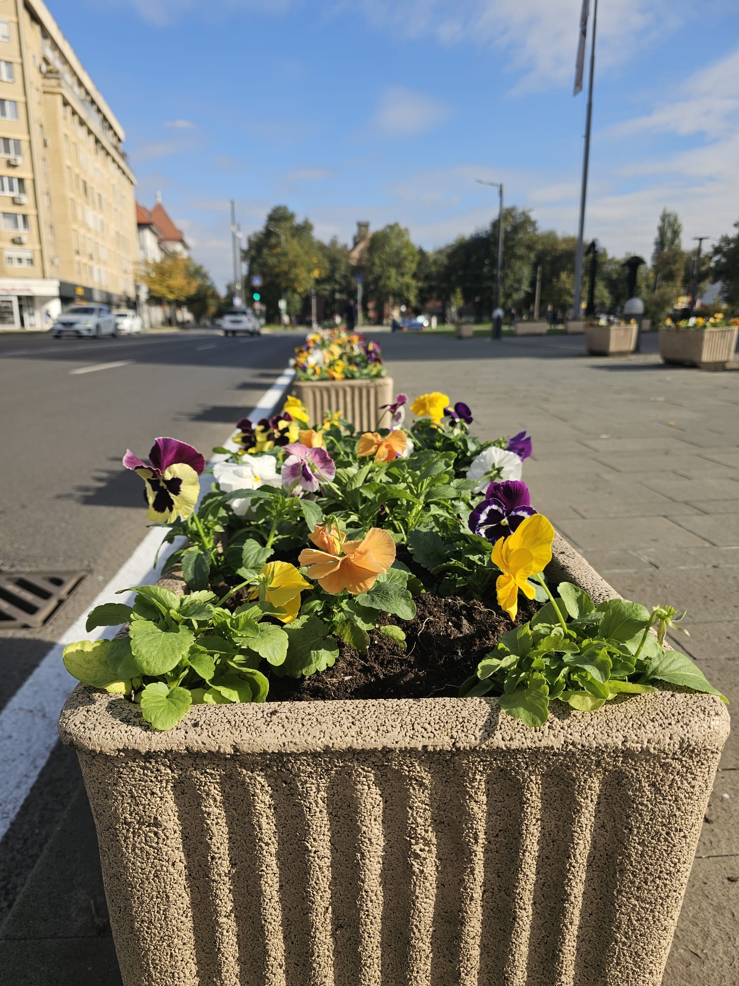 De această dată, panseluțele au devenit vedetele decorului, aducând culoare și prospețime în inima orașului.